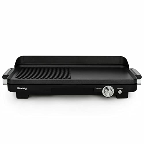 H.Koenig Grill och Plancha GRX330/elektrisk och kompakt, för inomhus och utomhus, non-stick beläggning/kött, fisk, grönsaker