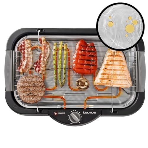 Taurus - Maximal elektrisk grill | 2400 W | Yta 41 x 24 cm | Justerbar termostat | rökfri vattenskål | inomhus och utomhus | enhetlig värme, grå, svart