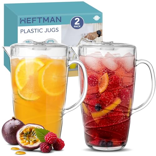 HEFTMAN genomskinliga plastkannor 2 liter – 2-pack plastkanna med lock och ventilerad pip – perfekt för cocktail, grill, fester, camping och vardag inomhus/utomhusbruk – vattenkanna med lock – paket