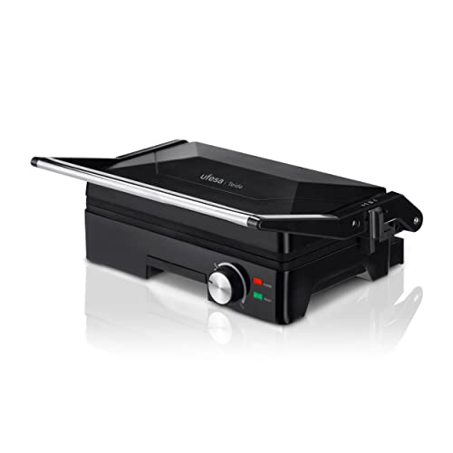 Ufesa Teide bordsgrill elektrisk, elektrisk grill för balkong, barbecue inomhus, 180º öppning, non-stick beläggning rostfritt stål, 1 600 W, temperaturkontroll, platta droppbricka diskmaskinssäker