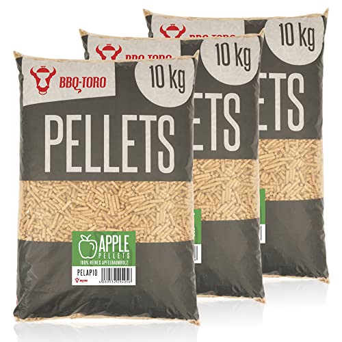BBQ-Toro Apple Pellets av 100 % äppelträd (30 kg) | äppelpellets för grill, rökare, pelletpizzaugn och värmesystem | grillpellets