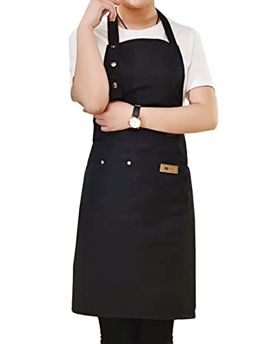 Rayson unisex justerbart förkläde med 2 fickor kök köksförkläde utformat för restaurang grill bageri florist chefkock servitörer, svart, One size
