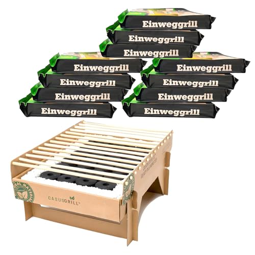 12 x casusgrill ekologisk engångsgrill 100 % hållbar – ekologisk grill rökfri 31 x 24 cm bambukol och grillgaller, naturliga material, mindre CO2 utsläpp, 5 min startklar över 1 h brinntid