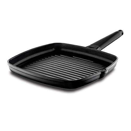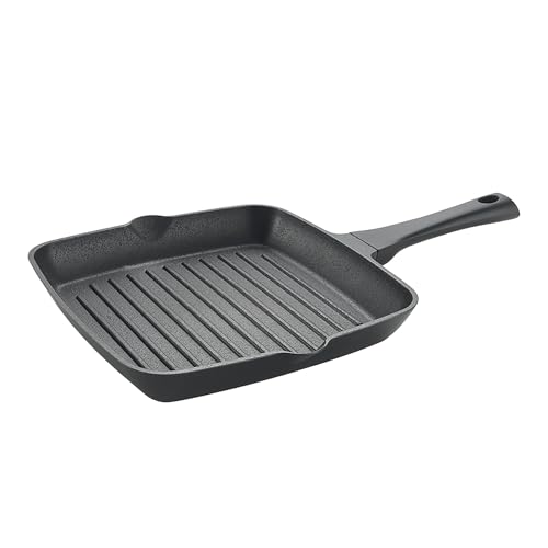 Plancia Grill, fyrkantig, non-stick, i formgjuten aluminium – perfekt för biffar, grönsaker och grillar – mångsidig planka – non-stick stekpanna – Grill för biffar – 28 x 28 cm, svart