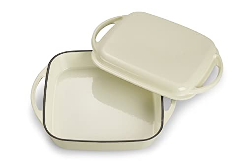 ECHTWERK Universal 2 i 1 rostningsset och stekpanna med lock, gjutjärnspanna med emaljbeläggning, lämplig för ugn, grill och induktion, Cream 1,5 l