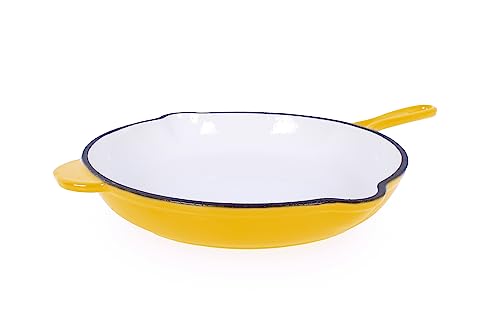 ECHTWERK stekpanna av gjutjärn med emaljbeläggning, gjutjärnspanna, ugnspanna med två handtag och pip, lämplig för ugnar, grill, BBQ och induktion, Ø 26,5 cm, gul