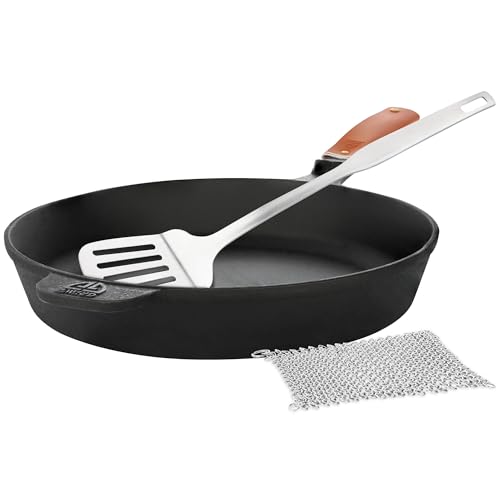 GRÄWE CI 350 gjutjärnspanna Ø 32 cm, stekpanna av gjutjärn, stekpanneset med stekspade med handtagsskydd (äkta läder), ringrengörare, stekpanna för induktion och grill
