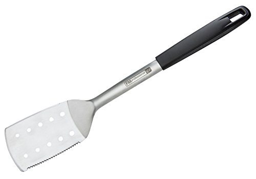 FMprofessional 22300 grill/stekspade BBQ, stekpanna av rostfritt stål, högklassig köttsläare med rundade blad (färg: svart/silver), kvantitet: 1 styck, PP
