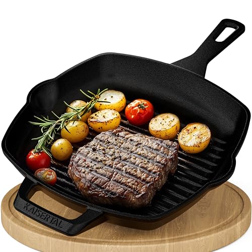KAISERTAL Grillpanna gjutjärn 27 cm – stekpanna och gjutjärnspanna, induktion, gjutjärnspanna, grill för gasgrill och ugn – järnpanna utomhus och inomhus – gjutjärnspanna