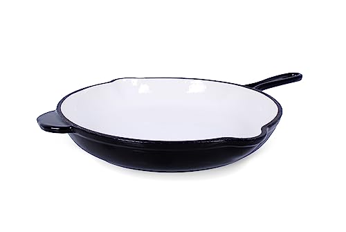 ECHTWERK Stekpanna av gjutjärn med emaljbeläggning, gjutjärnspanna, panna med två handtag och hällpip, lämplig för ugn, grill, grill och induktion, grädde, Ø 26,5 cm, svart