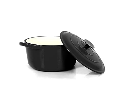 Echtwerk Gryta av gjutjärn med emaljbeläggning, gjutjärnsgryta, stekpanna med lock, rund brödbakgryta, lämplig för ugnar, grill, BBQ och induktion, svart, 3,5 L, Ø 22,5 cm, stor