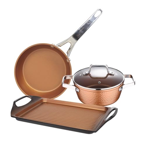 Ursprungssamling: kastrull med glaslock, 20 cm, med grill/grillplatta 45 cm och stekpanna 28 cm, smidd aluminium, lämplig för induktion