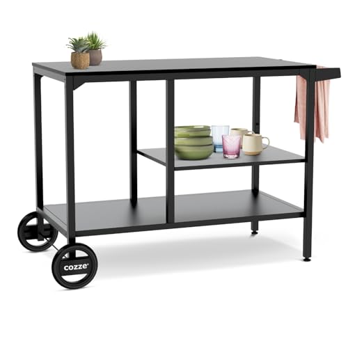Cozze® BBQ Station – grillbord för uteplatsen med plats för grill och pizzaugn, justerbar hylla i 3 nivåer, stål galvaniserat och pulverlackerat, 115 x 60 cm