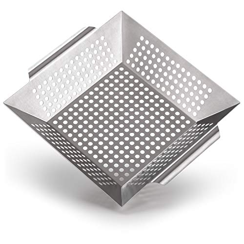 Blumtal grillbricka av 100% rostfritt stål - perfekt för att grilla grönsaker, grillkorg lämplig för alla typer av grillar, grilltillbehör, tål maskindisk, 21 x 21 x 6 cm (Medium)