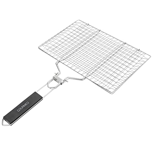 GOURMEO Grillkorg - Grillbricka i Rostfritt Stål För Fisk Och Grönsaker Med Handtag Och Borste - Rostfria Korgar För Grillning