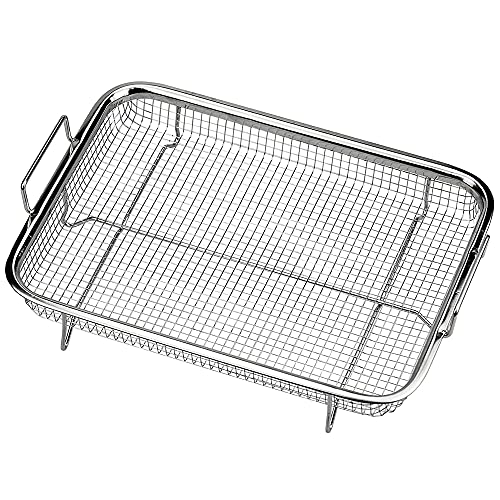 Supremery Uppsättning av 2 ugnar rostfritt stål grillkorg grillgaller grillplåt bakkorg för fettsnål varmluftsmatlagning, bakning, grillning i ugn eller grill