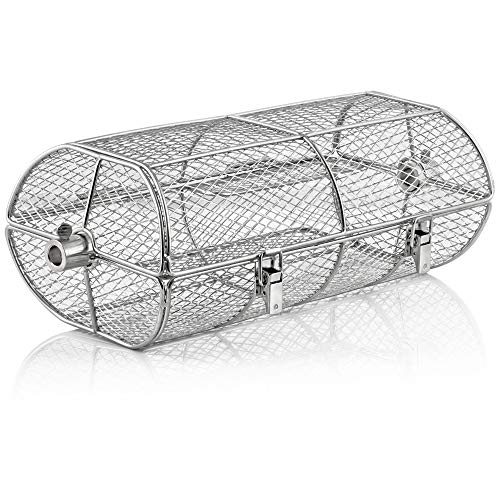 Topaliving Cylindrisk Grillkorg, Rostfritt Stål med Grillgaffel, BBQ Grillrulle, Grillställ för Grillning av Grönsaker, Fisk och Kött - Cylinder (1 st, L 30 cm)