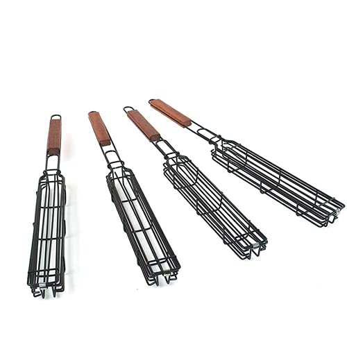 Verdelife 4 st BBQ non-stick grillspettkorg, Kebab grillställ och BBQ rostad fisk grillkorg med värmebeständigt trähandtag för grönsaker, räkor, fisk och skaldjur