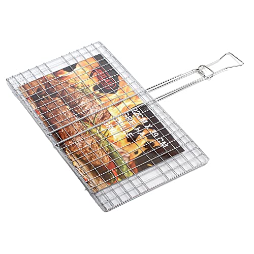 JJoexyfit Grillkorg, bärbar grillkorg hopfällbart rostfritt stål grillnät med grillmatta för rostad fisk, räkor, grönsaker, biff, kött