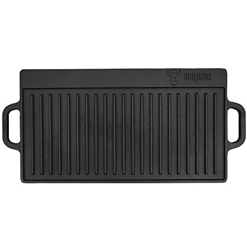 BBQ-Toro Grillplatta av gjutjärn, 41,5 x 31 cm, vändbar grillplatta för BBQ, gasgrill, kolgrill