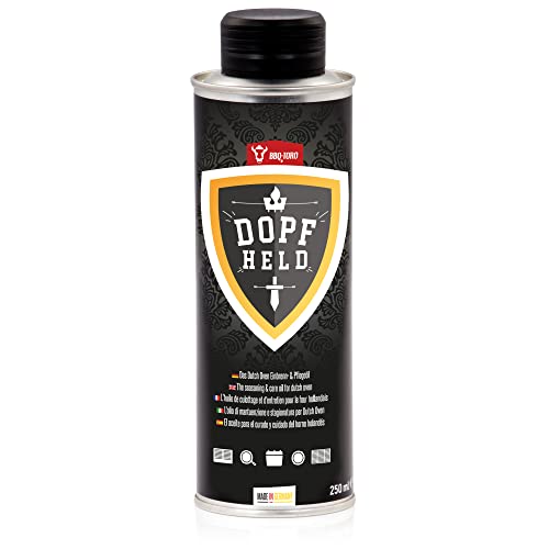 BBQ-Toro DOPFHELD – holländsk ugn, bränn- och vårdolja, 250 ml | olja för skötsel av gjutjärn, grilltillbehör | inbränningsolja för grillgaller, grillplatta, grillpanna, holländsk ugn med mera