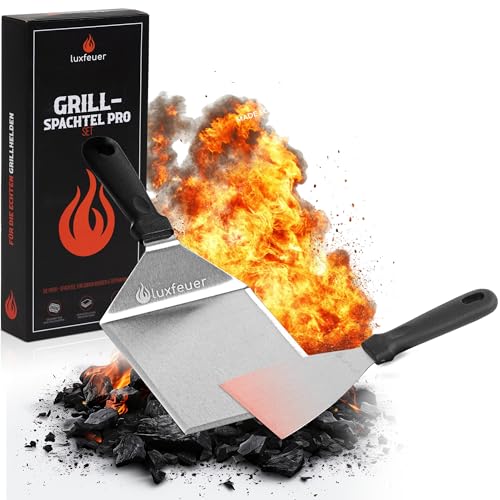 Lyxigt grillspatel, set om 2 i rostfritt stål, professionella plancha tillbehör, spatel och grillskrapa – stor grillspade för smash burger & Teppanyaki – BBQ grilltillbehör & present för män