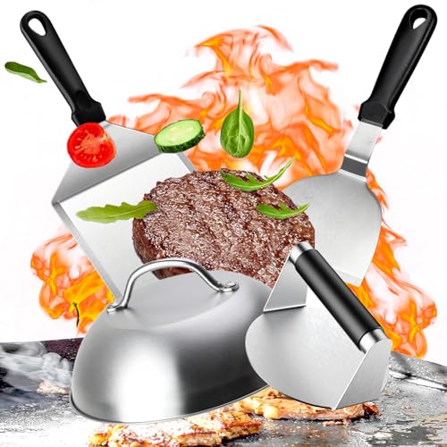 TOOHAO Smash Burger Set, 4-delat grillbestickset i rostfritt stål med hamburgerpress, stor grillspade, stekspade, hamburgerklocka, grilltillbehör, present till män för teppanyaki, BBQ, stekfest