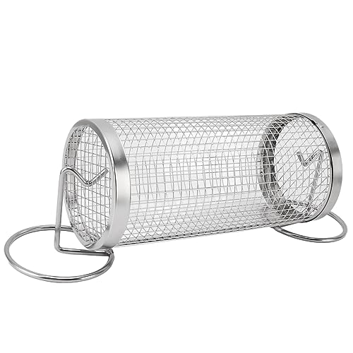 Rullande Grillkorgar, Rostfritt Stål Trådnät Cylinder Grillkorg, Portabelt Runt Grillnätrör, Grilltillbehör, Grillverktyg för Utomhuscampingpicknick (S)