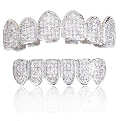 AINTTBY Hip-Hop 18K guldtänder Grillz grillar inlagda med glänsande zirkon rap tillbehör tandskydd personlighet halloween & julkläder – levereras med pincett och tandvax, Grillz, Ädelmetall, Kubisk