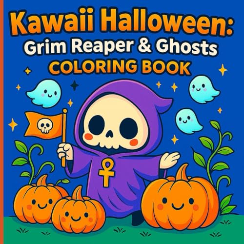 Kawaii Halloween: Grim Reaper & Ghosts Coloring Book: A Spooky-Cute Adventure Featuring Skeletons, Bats, Witches, and Pumpkin Friends – Great for Relaxation and Creativity