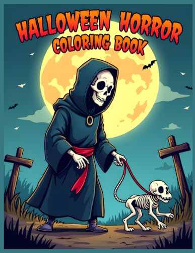Halloween Horror Coloring Book: Spooky Grim Reaper, Walking Skeleton Dog Coloring Pages for Stress Relief