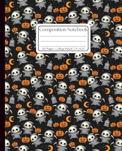 Cute Grim Reaper Composition Notebook: Spooky Halloween College Ruled Journal — Kawaii Gothic Patterned Cover for School, Work, and Note-Taking