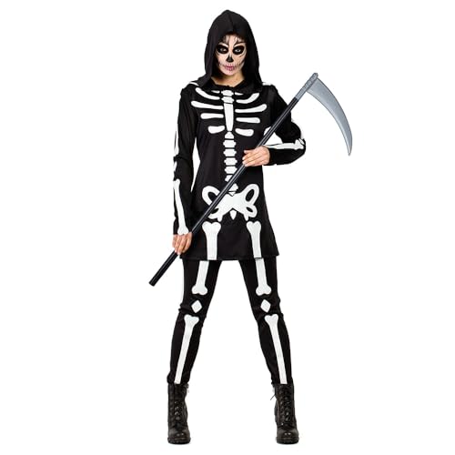 W WIDMANN MILANO Party Fashion – Kostym skelett, klänning, lisenkvinna, Grim Reaper, Halloween utklädnad