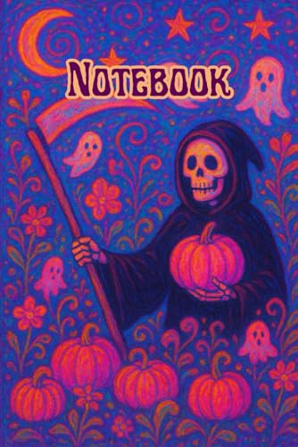 Grim Reaper Pumpkin Harvest Journal – Dreamy Pastel Halloween Lined Notebook: Spooky Cute Skeleton with Pink Pumpkin, Ghostly Garden & Magical Autumn Vibes