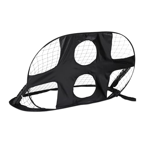 Relaxdays Pop Up-grind med målvägg, 2-i-1, vikbar fotbollsmål, trädgård, HBT: 80 x 120 x 85 cm, barngrind med väska, svart