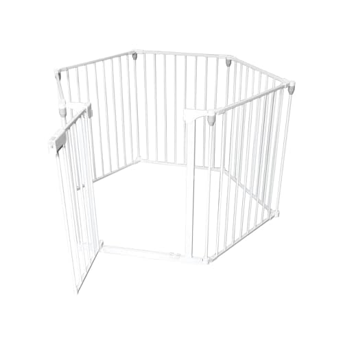 Säkerhetsbarriär för barn, hundar och katter med grind - Perfekt säkerhetsbox för hemmabruk och miljöseparator, av vitmålad metall, 120 x 74 cm