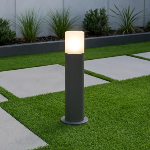 CGC Belysning mörkgrå utomhus pollarstolpe lampa trädgård modern cylinder antracit samtida uteplats terass trädgård gång kör dörr grind uppfart (medium)