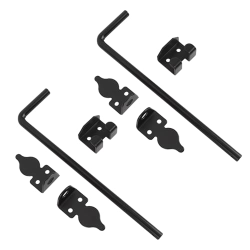 2 Set Grind Jordspärr Dubbla Dörrar Träkäppbult Kolstål Droppstång Metall Järn Staket för Stängsel, Dubbel Grind för Grind Dörr, Spärr