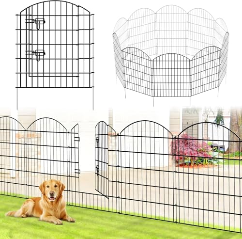 Thealyn Trädgårdsstaket 81 cm högt x 71 cm brett - 4 paneler + 1 grind, längd 3,5 m - inget gräv-staket, utomhus, rostfritt, metallstaket, husdjurstaket, djurbarriär, gränsstaket för gård
