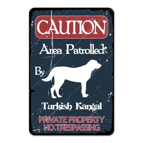 Roliga hundgårdsskyltar, område patrullerat av turkisk kangal varning hundskylt, hundälskargåvor, varningsvakt hund på tjänst, 20 x 30 cm ytterdörr grind staket aluminiumdekorationer, inomhus/utomhus