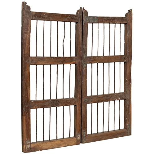 Biscottini Utomhus trädörr 110x5x97 cm | Garden Gate med dubbla dörrar | Vintage utomhus trädgård grind restaurerad