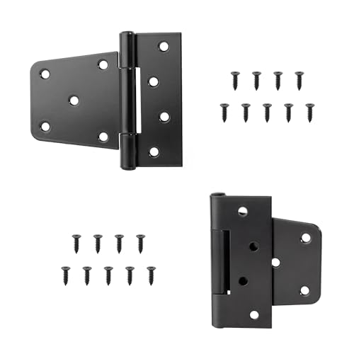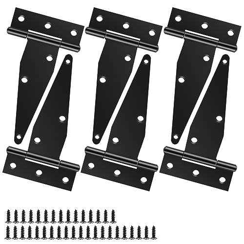Gångjärn, 15 cm kraftiga T-gångjärn utomhus metall T-rem grind gångjärn med skruvar, svarta tee-gångjärn för träkli dörrar graden staket, 6-pack