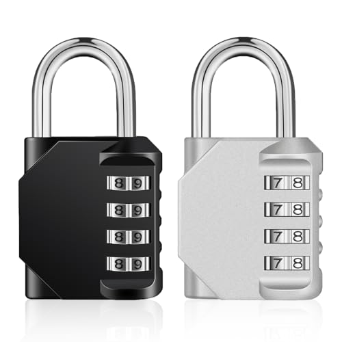 ZHEGE Kombinationshänglås utomhus, kraftiga väderbeständiga kombinationslås utomhus för staket grind, skjul, 4-siffriga hänglås, skolskåp hänglås 2-pack (svart och silver)