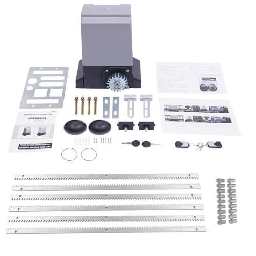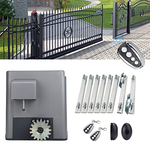 Skjutportsdrivning, skjutgrind, grindöppnare, elektriskt set med 2 fjärrkontroller och tandskenor, grind drift upp till 2 000 kg, garageportsdrivning, skjutdörr, 750 W