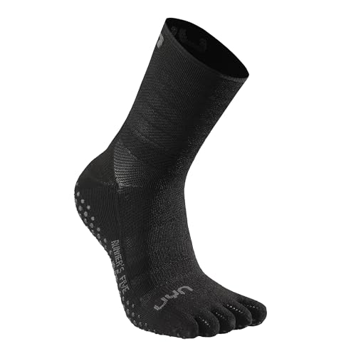 UYN Runner's Five Grip Socks – löparstrumpor med hög grepp för maximal stabilitet, komfort och prestanda, Svart, 35-38 EU