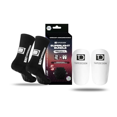 Tapedesign – Bundle Superlight Grip Socks + Shinguards 2.0 – Ultralätta fotbollsstrumpor med halkfria noppor och justerbara benskydd – perfekt grepp för fotboll, träning och tävling