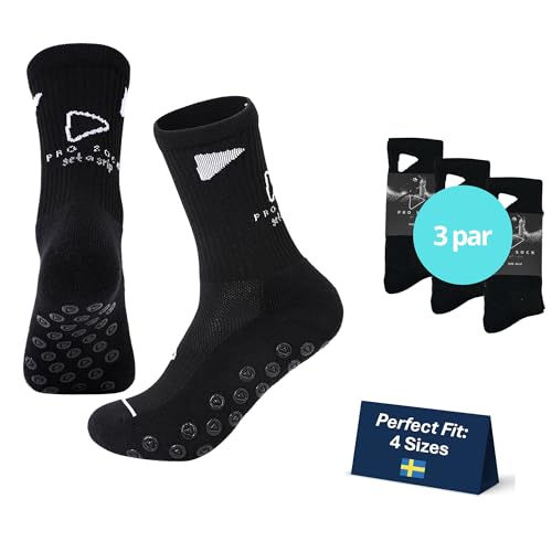 PRO SOCK Grip Socks Skillsocks, 3 PAR Greppstrumpor Fotboll, 4 storlekar för perfekt passform, slitstarka Fotbollstrumpor Grip för män, kvinnor och barn, Innebandy, Golf, Pickleball, Padel, Stl 40-42