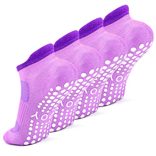 Busy Socks Hospital Resistant Women Skid Socks with Grippers,Safety Yoga Socks for Maternity,Seniors,2 Pairs,Purple