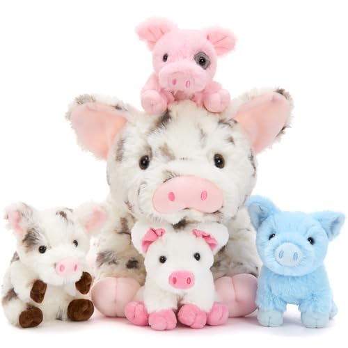 MorisMos Gris, gosedjur, stor, XXL, med 4 bebisar i magen, söt jättegris, plyschdjur, gosedjur, pignalle, födelsedag, jul, present barn