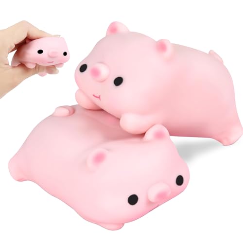 TECHEEL Anti-gris-leksak, 2 stycken rosa piggy squeeze leksak, stressgris, söt gris, stressleksak, gris-klämleksak, sensorisk autism, leksak, fest, presenter för barn.